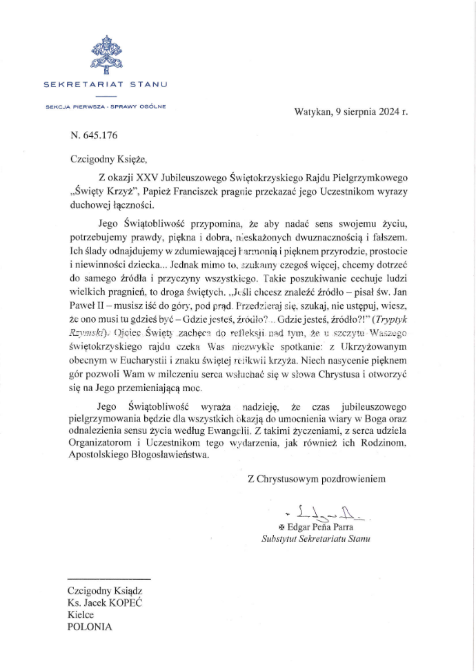 W XXV Jubileuszowym Świętokrzyskim Rajdzie Pielgrzymkowym „Święty Krzyż 2024”, który odbył się się w sobotę, 28 września 2024 r. pod hasłem „Krzyż drogą, prawdą i życiem”, uczestniczyło 2505 turystów-pielgrzymów. Wszystkim bardzo dziękujemy za wspólną wędrówkę i modlitwę.